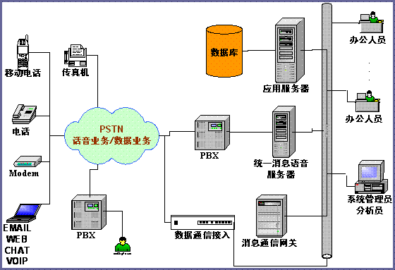 系统支持多媒体功能,可以实时处理语音留言、短信收发、Email处理等。
